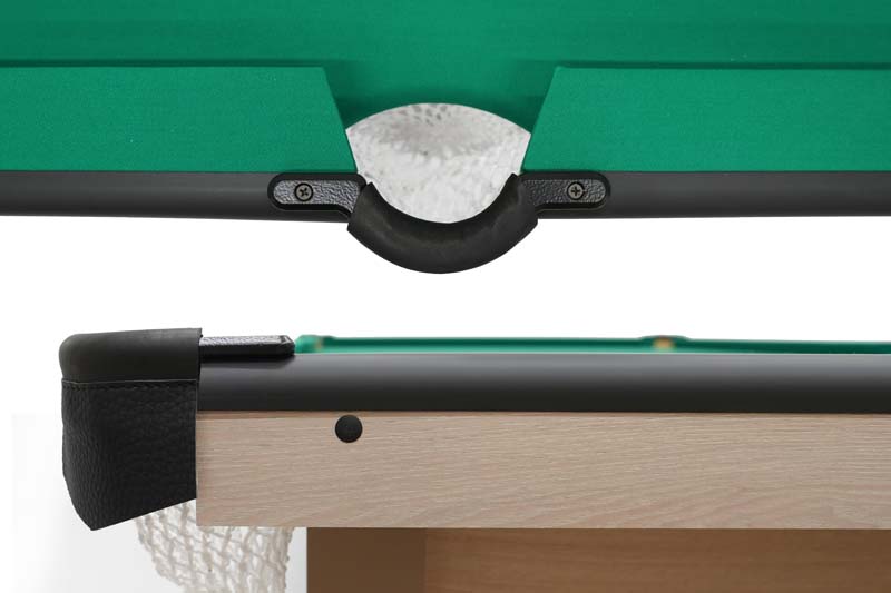 «Юнкер 2 NEW» укомплектован резиновым профилем Start Standard для предсказуемого отскока, износостойким сукном Manchester 45 и кожаной пелериной. Силуминовые скобы и хлопковые сетки луз дополняют комплектацию.