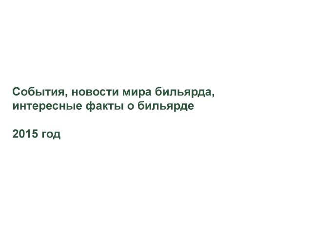 • События, новости мира бильярда, интересные факты о бильярде (2015 год)