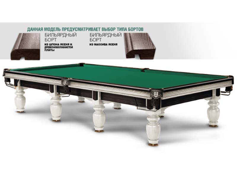 Борт из комбинации шпона ясеня и высокопрочной древесноволокнистой плиты: Сочетание двух видов древесины позволяет обеспечить крепкость бортов за счет жёсткости древесноволокнистой плиты и низкую стоимость стола. Форма комбинированного борта максимально адаптирована к постановке руки при игре, а благодаря шпону ясеня внешняя эстетика борта не нарушается - борт имеет идеальный внешний вид. Эксперимент подтверждает: сильные удары бильярдного шара не оставляют следов на поверхности комбинированного борта, что исключает риск повреждения при игре.