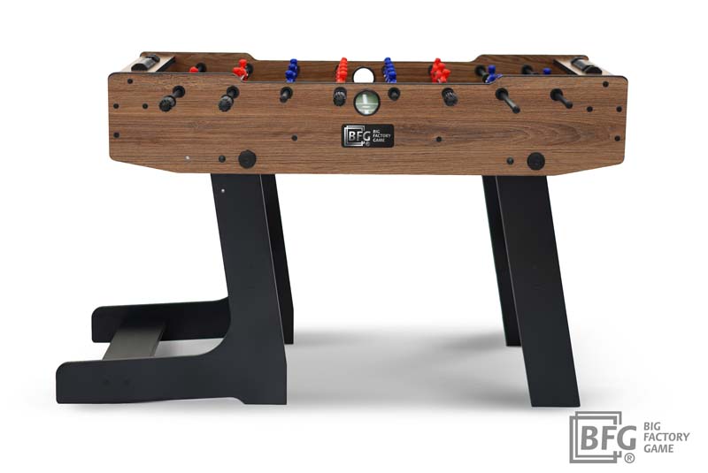 Корпус и игровое поле выполнены из высокопрочных материалов. Модель привлекательна своей компактностью, в сложенном виде она занимает минимальную площадь. Конструкция позволяет как быстро освободить пространство помещения, так и легко вернуть стол в игровое положение.