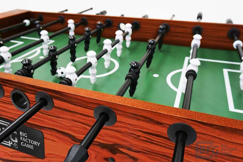 Стол оборудован профессиональными штангами и стилизованными фигурками игроков, выполненными из долговечных и прочных материалов. Ключевым преимуществом модели является материал - стол изготовлен из натурального массива древесины с применением шпона ценных пород.