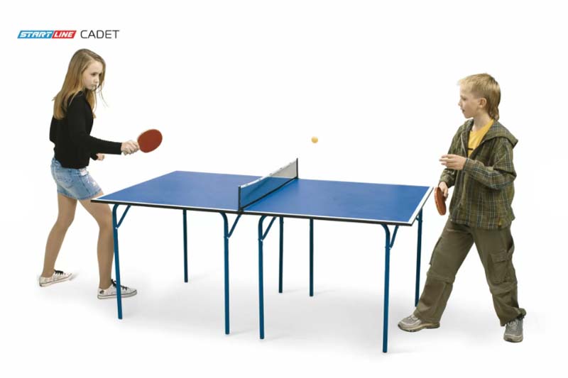 Теннисный стол Cadet прекрасно подойдет для офиса или дома. Стол имеет небольшие габариты и не занимает много места. Стол очень прост в установке, и при необходимости его всегда можно сложить. Столешница модели Cadet сделана из прочного материала ЛДСП и покрыта меламином, что предотвращает появление трещин и сколов. Кромка стола выполнена из пвх толщиной 45 мм, что также защищает стол от повреждений. Сетка идет в комплекте к этой модели.