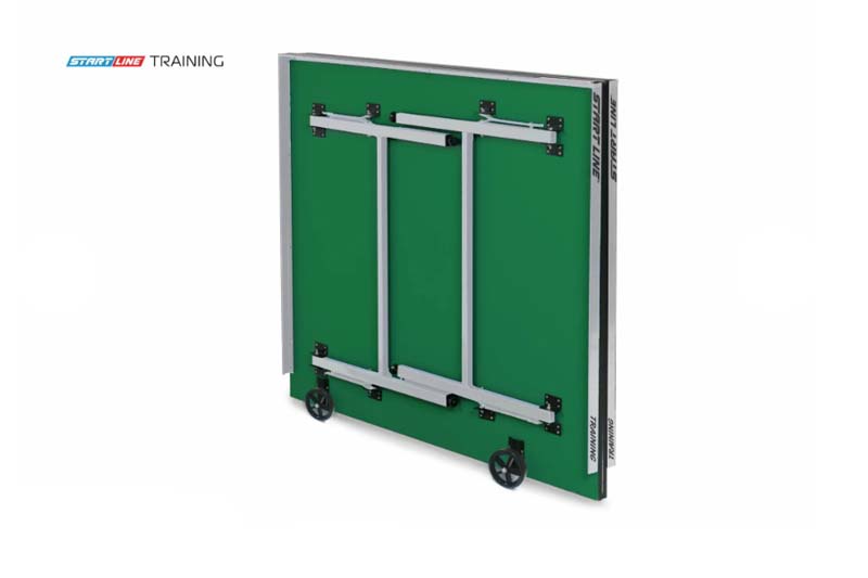 Теннисный стол Training - это хороший вариант для спортивной секции, так как он имеет надежный каркас. Столешница из прочного ЛДСП толщиной 22 мм делает стол прекрасным вариантом для тренировок. Игровое поле покрыто меламином, который предотвращает появление трещин и сколов на поверхности стола, а кромка из ПВХ толщиной 45 мм защищает стол от повреждений. Важной особенностью этой модели являются транспортные ролики на боковой поверхности стола, которые повышают его мобильность. Стол Training очень прост в установке и сборке, не требует использования специальных инструментов.