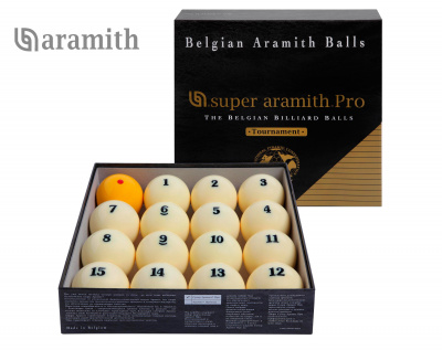 Super Aramith Pro-Cup Tournament Pyramid - шары из фенол-альдегидной смолы производства бельгийской фирмы Saluc S.A. Комплект включает 15 шаров с номерами и биток для русской пирамиды диаметра 67 мм. Уровень качества Super Pro шаров удовлетворяет нуждам самых требовательных профессионалов и спортсменов-любителей.