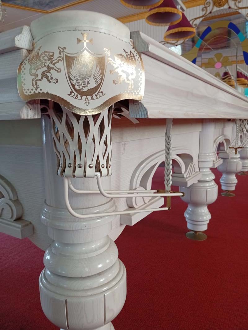 В этом бильярдном столе органично сочетаются безукоризненные игровые свойства и роскошный дизайн. Лаконичные узоры на лафете, выполненные вручную, наверняка придутся по вкусу ценителям сдержанной роскоши. Металлическая несущая рама обеспечивает совершенную жесткость конструкции и игровые качества профессионального бильярда.
