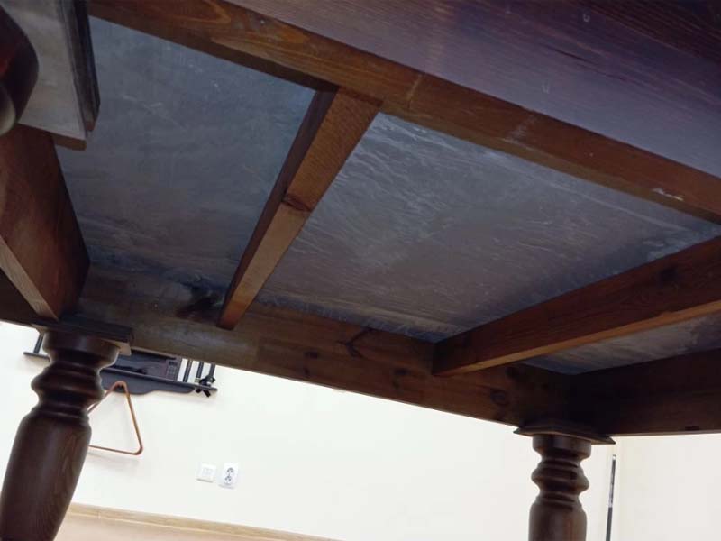 Усиленный лафет обеспечивает повышенную статичность и жесткость конструкции стола. Устойчивость также придают пластиковые опоры, в которых установлена утолщенная шпилька, сохраняющая устойчивость конструкции Габариты позволяют установить стол как в квартире, так и в загородном доме или в офисе.