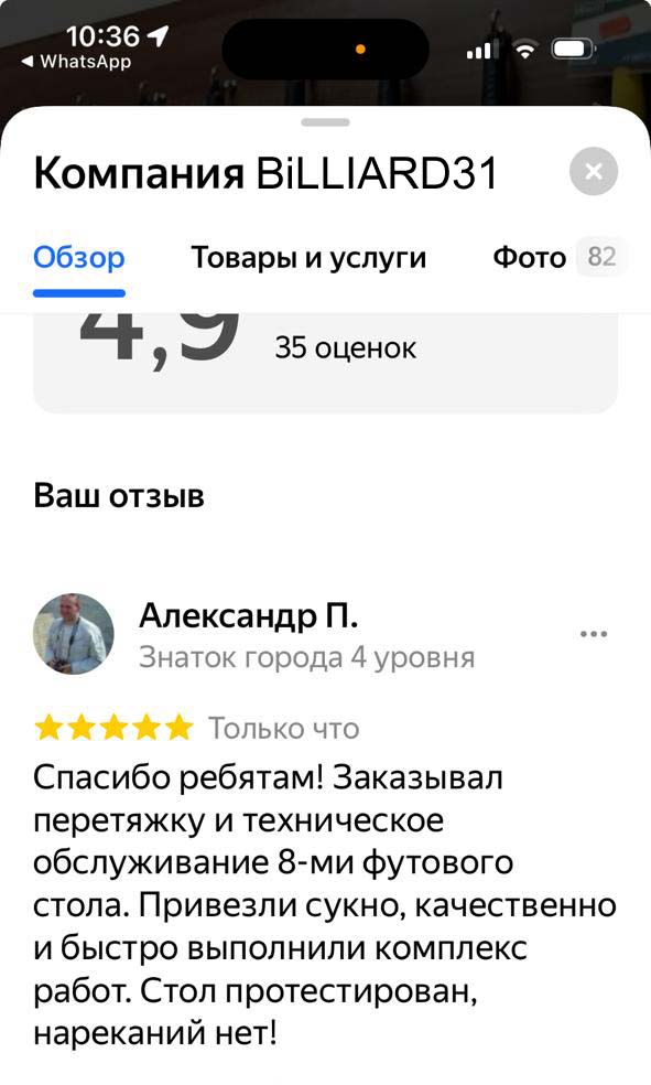 Заказывал перетяжку и техническое обслуживание 8-ми футового стола.