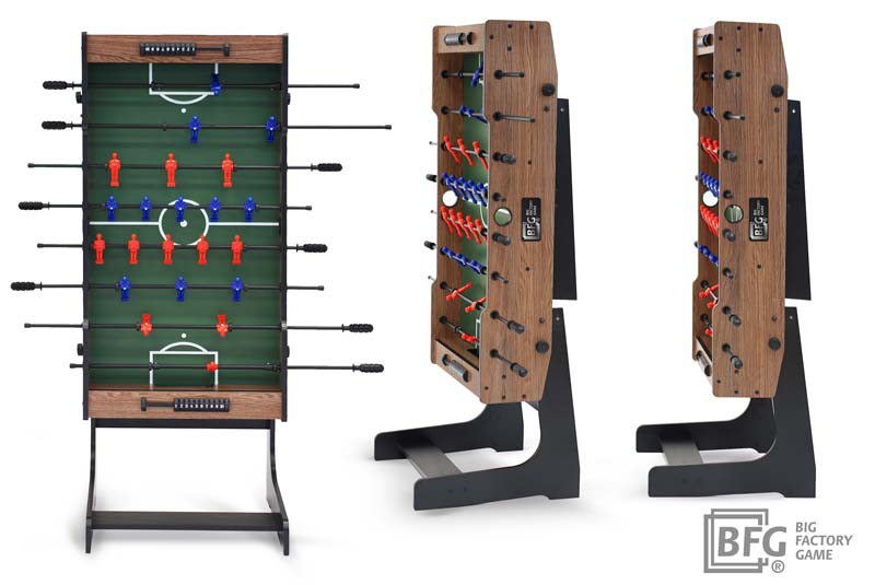 Корпус и игровое поле выполнены из высокопрочных материалов. Модель привлекательна своей компактностью, в сложенном виде она занимает минимальную площадь. Конструкция позволяет как быстро освободить пространство помещения, так и легко вернуть стол в игровое положение.