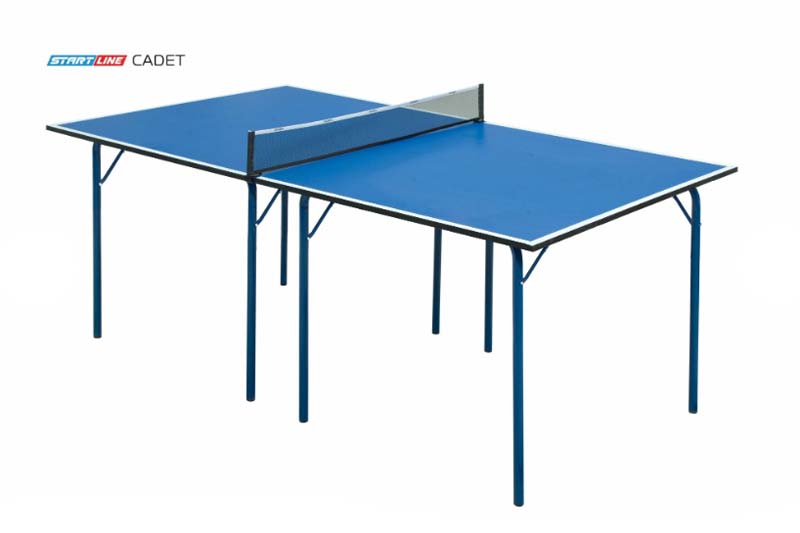 Теннисный стол Cadet прекрасно подойдет для офиса или дома. Стол имеет небольшие габариты и не занимает много места. Стол очень прост в установке, и при необходимости его всегда можно сложить. Столешница модели Cadet сделана из прочного материала ЛДСП и покрыта меламином, что предотвращает появление трещин и сколов. Кромка стола выполнена из пвх толщиной 45 мм, что также защищает стол от повреждений. Сетка идет в комплекте к этой модели.