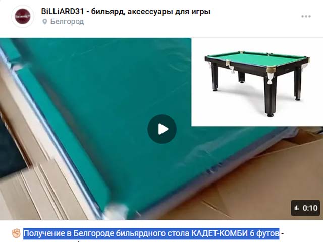Получение в Белгороде бильярдного стола КАДЕТ-КОМБИ 6 футов - универсального бильярдного стола, адаптированного под русскую пирамиду и американский пул.