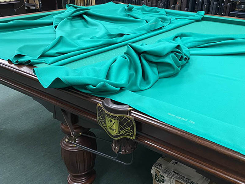 Так решили после случая с перетяжкой бильярдного стола размером 12-ть футов в "Амакс-конгресс отеле" города Белгород. На такой стол необходимо 5.0 метров сукна - было предложено отличное, но слабо тянущееся чешское сукно Eurosprint Cardinal 2000. Поставщик отрезал чуть меньше, стол был на самой толстой плите толщиной 45 мм. Отлично, что сукна хватило и для перетяжки игрового поля и для перетяжки бортов, но хватило его реально впритык!